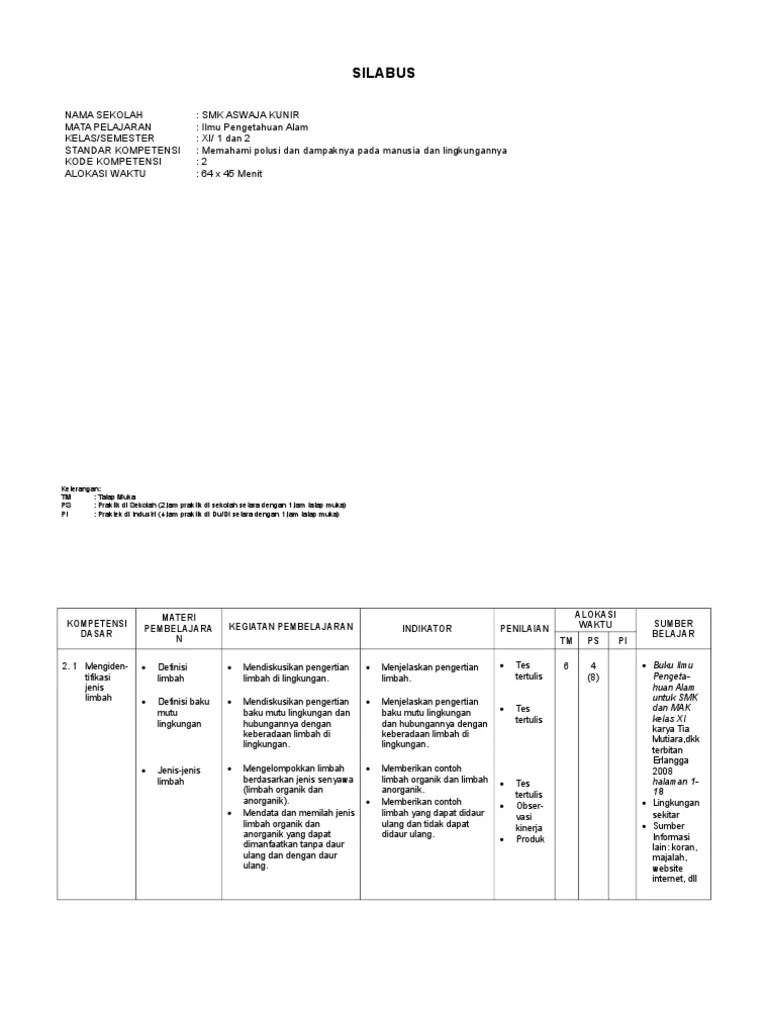 Silabus smk kelas x ipa kesehatan semester 1 dan 2. Unduh sebagai docx, pdf, txt atau baca online dari scribd. Dapatkan informasi pendidikan terbaru melalui email secara berkala. Tandai sebagai konten tidak pantas. Ppt sejarah ipa xii ebook free download pdf, doc, xls, rtf,. Bahan ajar hendaknya memuat keselarasan antara materi dan pendekatan yang digunakan, sehingga tujuan pembelajaran dapat tercapai dengan baik. Kompetensi dasar materi pokok pembelajaran penilaian alokasiwaktu sumber belajar 1.4memahami nilainilai . Materi kelas 8 smp ipa, ips, ppkn, bahasa, mat . Of characters soal uas semester ganjil kls 4 sd materi ipa smk semester 1. Untuk materi pencemaran lingkungan, kompetensi dasar yang harus dikuasai siswa smp: Materi ipa smk kelas xi semester 1. Catatan induksi matematika kelas 11 semester 1. Soal ujian semester ganjil ipa kelas xi ap/ak smk hang tuah 2 1.